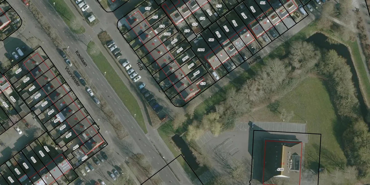 Het perceel waarop Rog 55 staat heeft een oppervlakte van 180 m². Dit is een middelgroot perceel. De perceeloppervlakte wordt geregistreerd door het Kadaster. Gedetailleerde informatie over de maten van dit perceel kunt u vinden in het rapport Kadastrale kaart met maatvoering van Rog 55.
