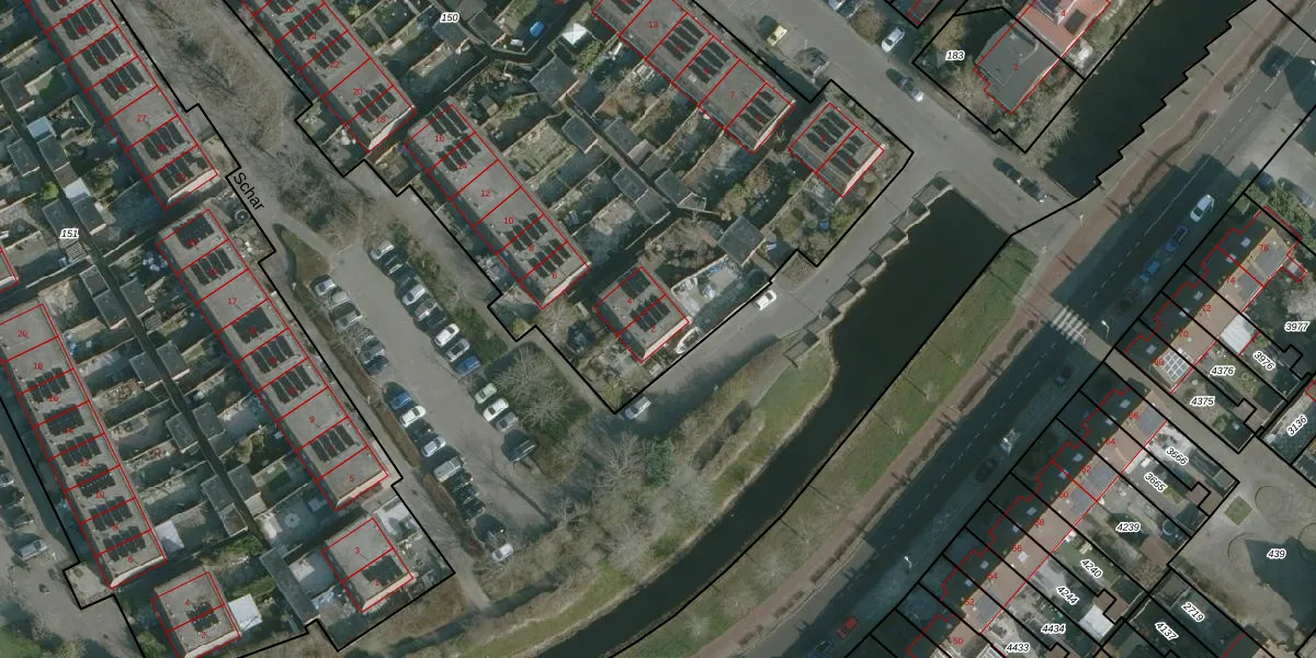 Het perceel waarop Schar 2 staat heeft een oppervlakte van 6200 m². Dit is een zeer groot perceel. De perceeloppervlakte wordt geregistreerd door het Kadaster. Gedetailleerde informatie over de maten van dit perceel kunt u vinden in het rapport Kadastrale kaart met maatvoering van Schar 2.