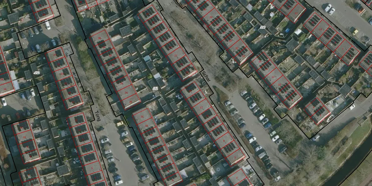 Het perceel waarop Schar 21 staat heeft een oppervlakte van 6150 m². Dit is een zeer groot perceel. De perceeloppervlakte wordt geregistreerd door het Kadaster. Gedetailleerde informatie over de maten van dit perceel kunt u vinden in het rapport Kadastrale kaart met maatvoering van Schar 21.