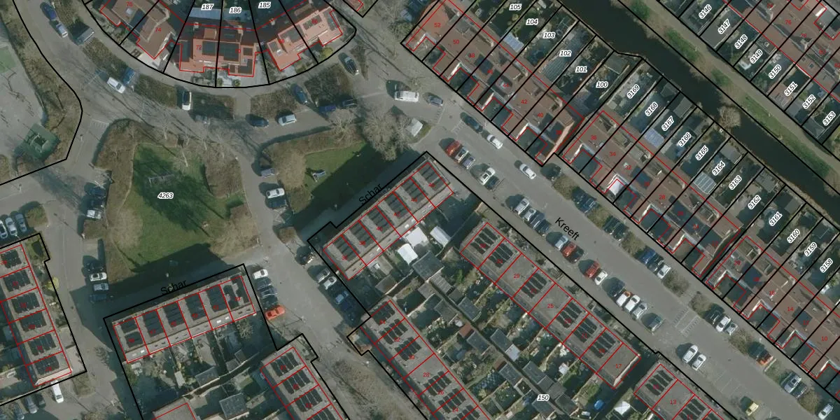 Het perceel waarop Schar 44 staat heeft een oppervlakte van 6200 m². Dit is een zeer groot perceel. De perceeloppervlakte wordt geregistreerd door het Kadaster. Gedetailleerde informatie over de maten van dit perceel kunt u vinden in het rapport Kadastrale kaart met maatvoering van Schar 44.