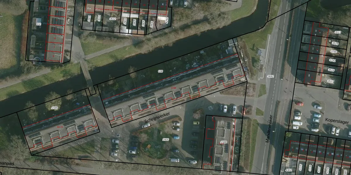 Het perceel waarop Schrijnwerker 10 staat heeft een oppervlakte van 2085 m². Dit is een zeer groot perceel. De perceeloppervlakte wordt geregistreerd door het Kadaster. Gedetailleerde informatie over de maten van dit perceel kunt u vinden in het rapport Kadastrale kaart met maatvoering van Schrijnwerker 10.