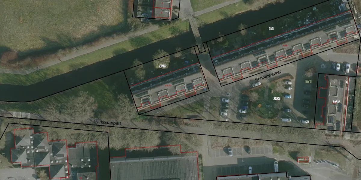 Het perceel waarop Schrijnwerker 68 staat heeft een oppervlakte van 1054 m². Dit is een zeer groot perceel. De perceeloppervlakte wordt geregistreerd door het Kadaster. Gedetailleerde informatie over de maten van dit perceel kunt u vinden in het rapport Kadastrale kaart met maatvoering van Schrijnwerker 68.
