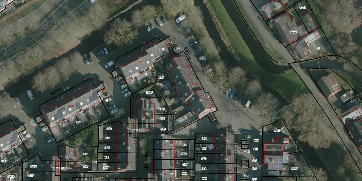 Het perceel waarop Sering 132 staat heeft een oppervlakte van 1440 m². Dit is een zeer groot perceel. De perceeloppervlakte wordt geregistreerd door het Kadaster. Gedetailleerde informatie over de maten van dit perceel kunt u vinden in het rapport Kadastrale kaart met maatvoering van Sering 132.
