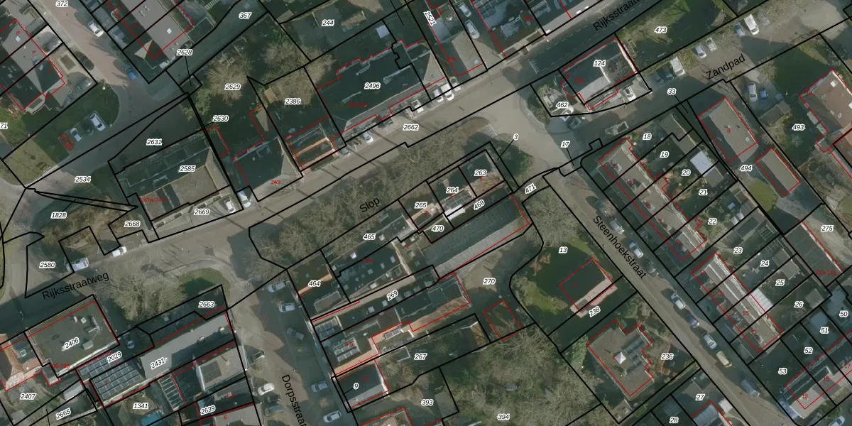 Gebruik de zoekbalk of klik op een perceel voor informatie over de adressen binnen dit perceel.