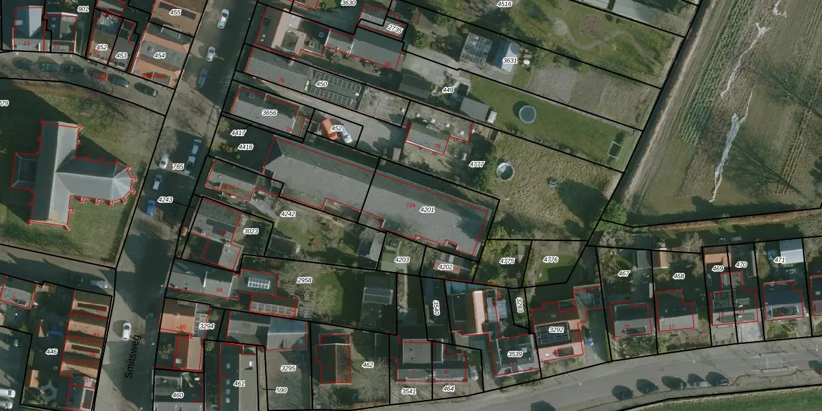 Het perceel waarop Smitsweg 72-a staat heeft een oppervlakte van 508 m². Dit is een groot perceel. De perceeloppervlakte wordt geregistreerd door het Kadaster. Gedetailleerde informatie over de maten van dit perceel kunt u vinden in het rapport Kadastrale kaart met maatvoering van Smitsweg 72-a.