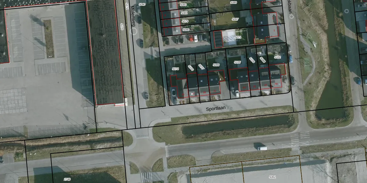 Sportlaan 15 is gelegen op kadastraal perceel HLV01C5074. Deze kadastrale aanduiding is uniek en wordt gebruikt door het Kadaster om eigendomsrechten en andere zakelijke rechten vast te leggen. Het perceel maakt onderdeel uit van de kadastrale gemeente Hellevoetsluis.