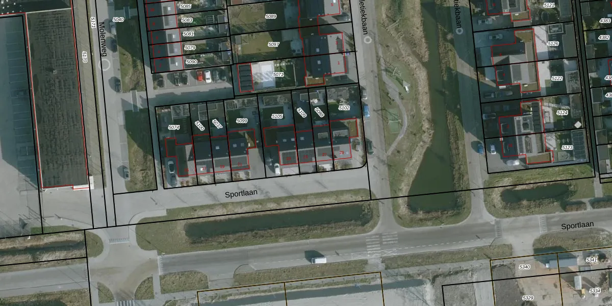 Sportlaan 25 is gelegen op kadastraal perceel HLV01C5109. Deze kadastrale aanduiding is uniek en wordt gebruikt door het Kadaster om eigendomsrechten en andere zakelijke rechten vast te leggen. Het perceel maakt onderdeel uit van de kadastrale gemeente Hellevoetsluis.
