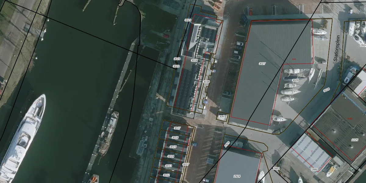 Stationsplein 32 is gelegen op kadastraal perceel HLV01A3018. Deze kadastrale aanduiding is uniek en wordt gebruikt door het Kadaster om eigendomsrechten en andere zakelijke rechten vast te leggen. Het perceel maakt onderdeel uit van de kadastrale gemeente Hellevoetsluis.