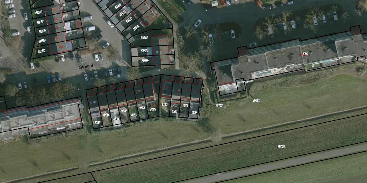 Het perceel waarop Steiger 20 staat heeft een oppervlakte van 112 m². Dit is een middelgroot perceel. De perceeloppervlakte wordt geregistreerd door het Kadaster. Gedetailleerde informatie over de maten van dit perceel kunt u vinden in het rapport Kadastrale kaart met maatvoering van Steiger 20.