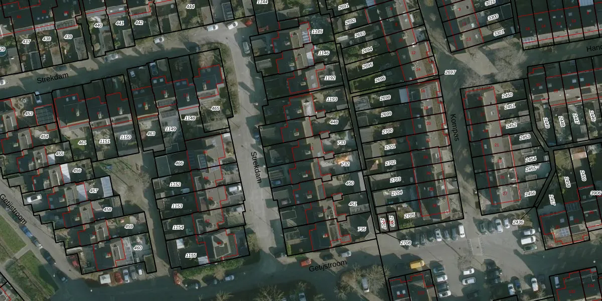 Het perceel waarop Strekdam 11 staat heeft een oppervlakte van 216 m². Dit is een middelgroot perceel. De perceeloppervlakte wordt geregistreerd door het Kadaster. Gedetailleerde informatie over de maten van dit perceel kunt u vinden in het rapport Kadastrale kaart met maatvoering van Strekdam 11.