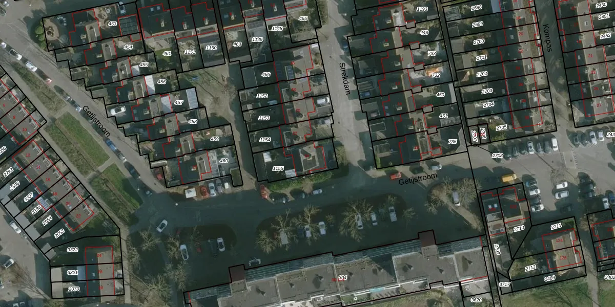 Gebruik de zoekbalk of klik op een perceel voor informatie over de adressen binnen dit perceel.