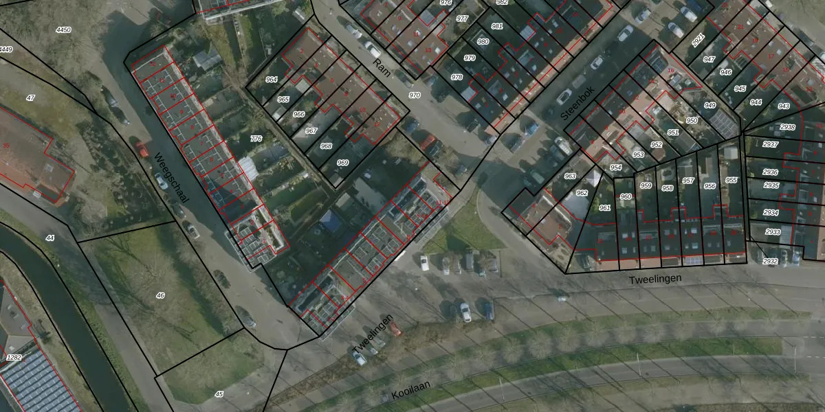 Tweelingen 9 is gelegen op kadastraal perceel HLV01G776. Deze kadastrale aanduiding is uniek en wordt gebruikt door het Kadaster om eigendomsrechten en andere zakelijke rechten vast te leggen. Het perceel maakt onderdeel uit van de kadastrale gemeente Hellevoetsluis.