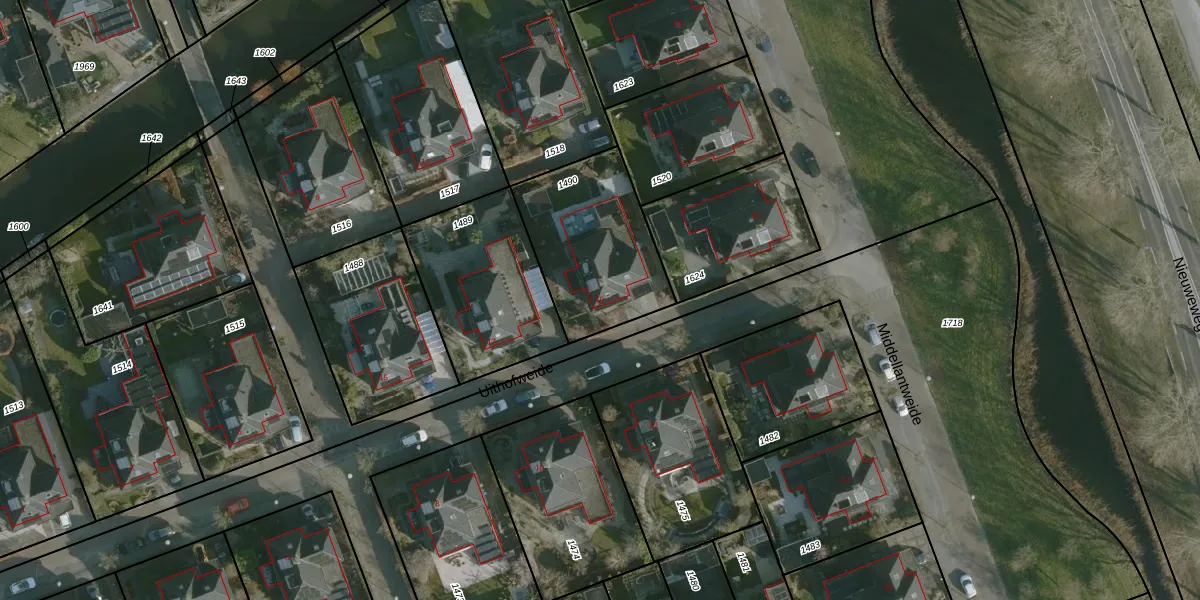 Het perceel waarop Uithofweide 19 staat heeft een oppervlakte van 570 m². Dit is een groot perceel. De perceeloppervlakte wordt geregistreerd door het Kadaster. Gedetailleerde informatie over de maten van dit perceel kunt u vinden in het rapport Kadastrale kaart met maatvoering van Uithofweide 19.