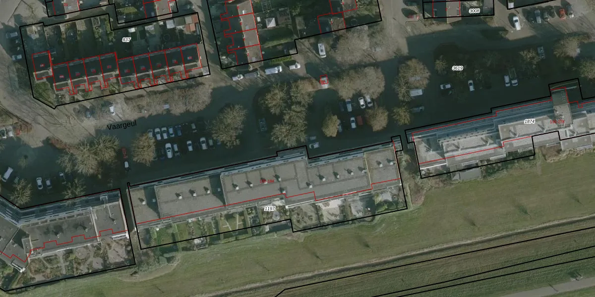 Het perceel waarop Vaargeul 134 staat heeft een oppervlakte van 2043 m². Dit is een zeer groot perceel. De perceeloppervlakte wordt geregistreerd door het Kadaster. Gedetailleerde informatie over de maten van dit perceel kunt u vinden in het rapport Kadastrale kaart met maatvoering van Vaargeul 134.