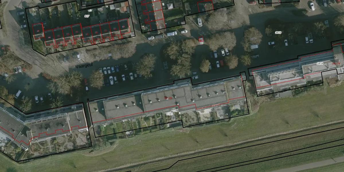 Het perceel waarop Vaargeul 172 staat heeft een oppervlakte van 2043 m². Dit is een zeer groot perceel. De perceeloppervlakte wordt geregistreerd door het Kadaster. Gedetailleerde informatie over de maten van dit perceel kunt u vinden in het rapport Kadastrale kaart met maatvoering van Vaargeul 172.