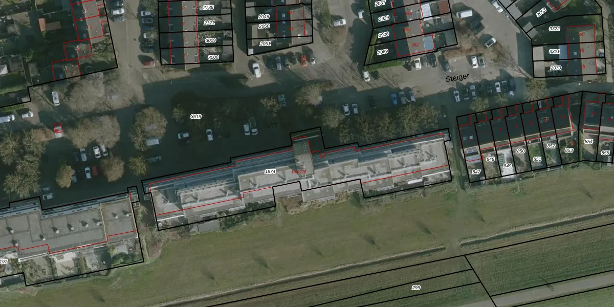 Het perceel waarop Vaargeul 192 staat heeft een oppervlakte van 1610 m². Dit is een zeer groot perceel. De perceeloppervlakte wordt geregistreerd door het Kadaster. Gedetailleerde informatie over de maten van dit perceel kunt u vinden in het rapport Kadastrale kaart met maatvoering van Vaargeul 192.