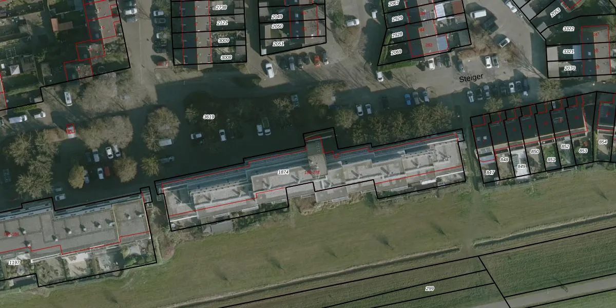 Het perceel waarop Vaargeul 216 staat heeft een oppervlakte van 1610 m². Dit is een zeer groot perceel. De perceeloppervlakte wordt geregistreerd door het Kadaster. Gedetailleerde informatie over de maten van dit perceel kunt u vinden in het rapport Kadastrale kaart met maatvoering van Vaargeul 216.