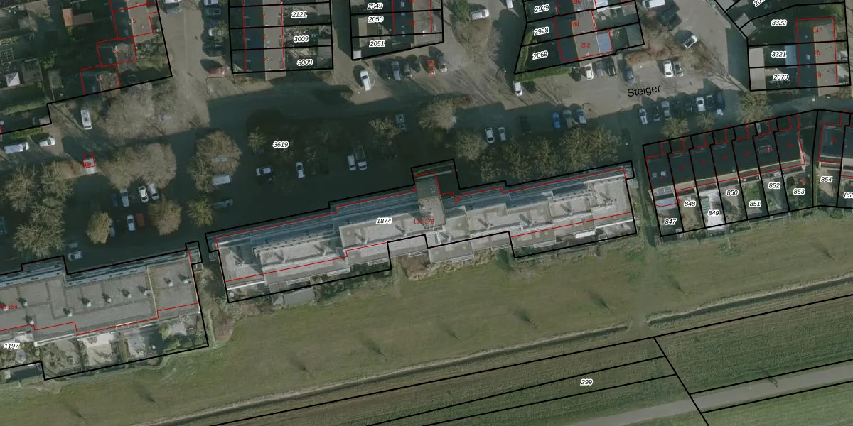 Het perceel waarop Vaargeul 228 staat heeft een oppervlakte van 1610 m². Dit is een zeer groot perceel. De perceeloppervlakte wordt geregistreerd door het Kadaster. Gedetailleerde informatie over de maten van dit perceel kunt u vinden in het rapport Kadastrale kaart met maatvoering van Vaargeul 228.