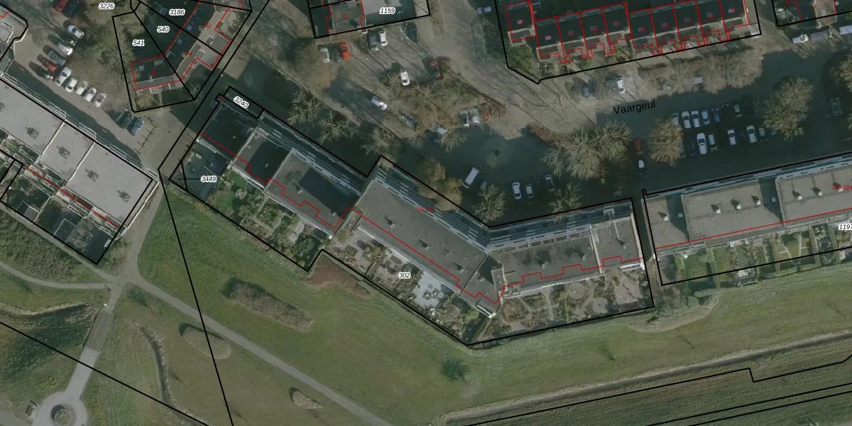 Het perceel waarop Vaargeul 90 staat heeft een oppervlakte van 2918 m². Dit is een zeer groot perceel. De perceeloppervlakte wordt geregistreerd door het Kadaster. Gedetailleerde informatie over de maten van dit perceel kunt u vinden in het rapport Kadastrale kaart met maatvoering van Vaargeul 90.
