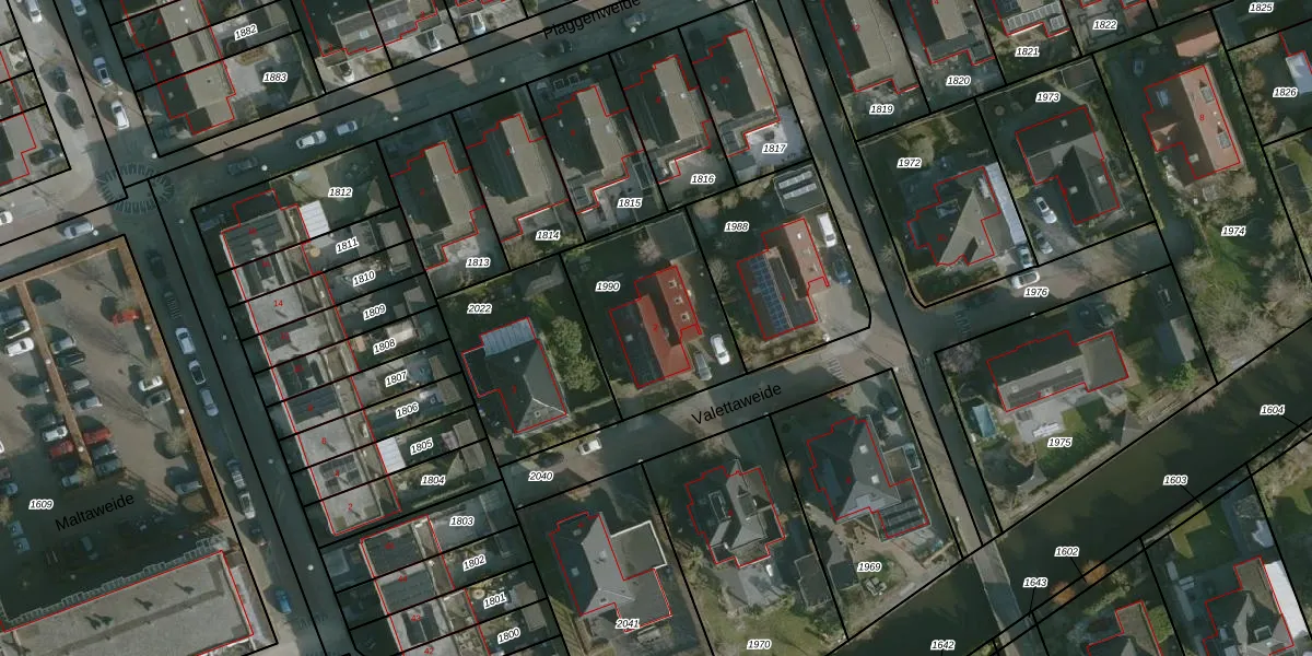 Het perceel waarop Valettaweide 2 staat heeft een oppervlakte van 557 m². Dit is een groot perceel. De perceeloppervlakte wordt geregistreerd door het Kadaster. Gedetailleerde informatie over de maten van dit perceel kunt u vinden in het rapport Kadastrale kaart met maatvoering van Valettaweide 2.