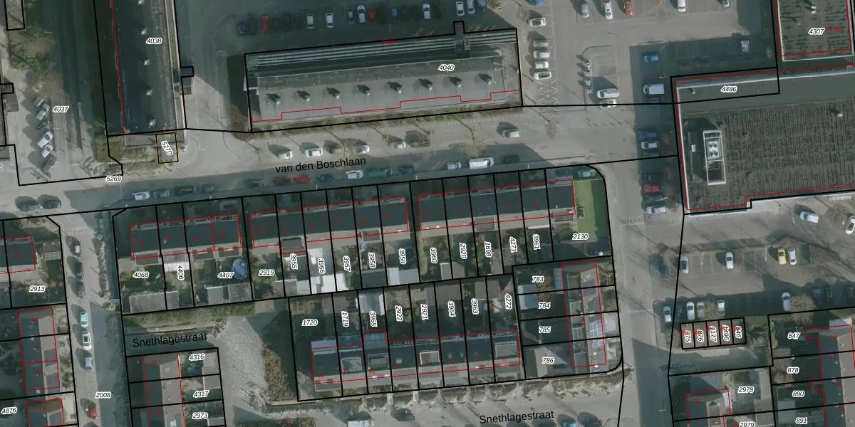 Het perceel waarop van den Boschlaan 11 staat heeft een oppervlakte van 182 m². Dit is een middelgroot perceel. De perceeloppervlakte wordt geregistreerd door het Kadaster. Gedetailleerde informatie over de maten van dit perceel kunt u vinden in het rapport Kadastrale kaart met maatvoering van van den Boschlaan 11.