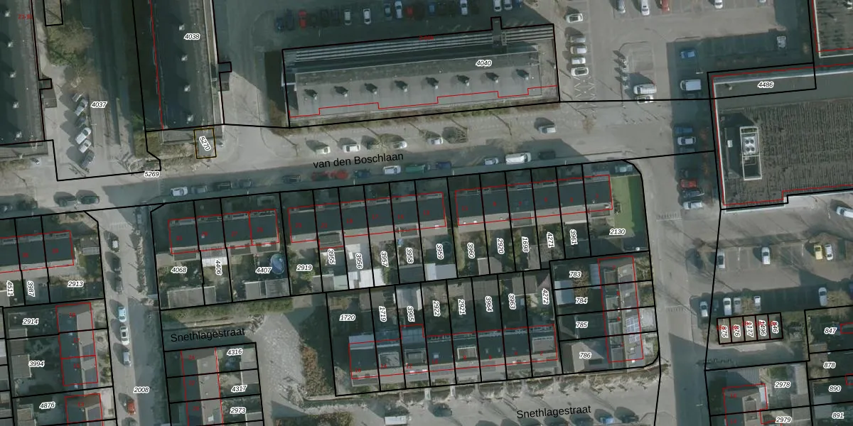 Het perceel waarop van den Boschlaan 13 staat heeft een oppervlakte van 183 m². Dit is een middelgroot perceel. De perceeloppervlakte wordt geregistreerd door het Kadaster. Gedetailleerde informatie over de maten van dit perceel kunt u vinden in het rapport Kadastrale kaart met maatvoering van van den Boschlaan 13.