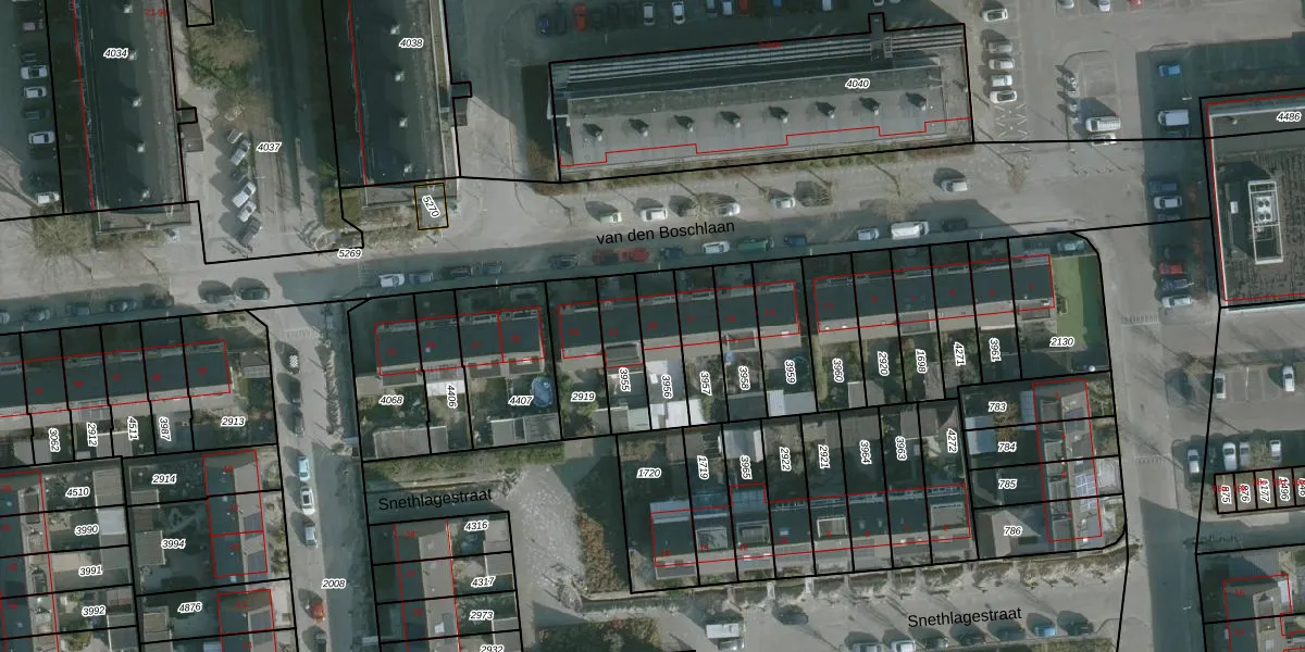 Het perceel waarop van den Boschlaan 19 staat heeft een oppervlakte van 145 m². Dit is een middelgroot perceel. De perceeloppervlakte wordt geregistreerd door het Kadaster. Gedetailleerde informatie over de maten van dit perceel kunt u vinden in het rapport Kadastrale kaart met maatvoering van van den Boschlaan 19.