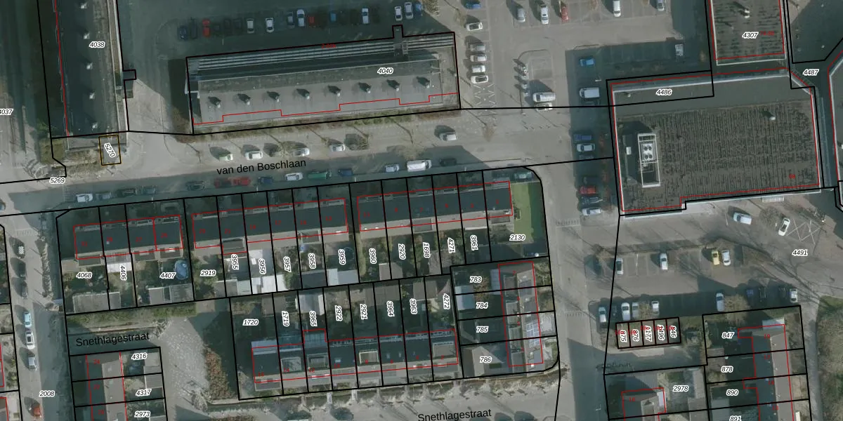 Het perceel waarop van den Boschlaan 7 staat heeft een oppervlakte van 142 m². Dit is een middelgroot perceel. De perceeloppervlakte wordt geregistreerd door het Kadaster. Gedetailleerde informatie over de maten van dit perceel kunt u vinden in het rapport Kadastrale kaart met maatvoering van van den Boschlaan 7.