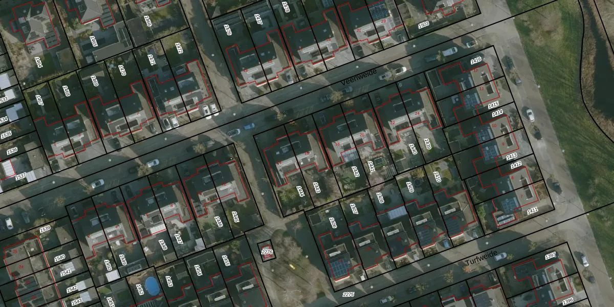 Het perceel waarop Veenweide 16 staat heeft een oppervlakte van 284 m². Dit is een middelgroot perceel. De perceeloppervlakte wordt geregistreerd door het Kadaster. Gedetailleerde informatie over de maten van dit perceel kunt u vinden in het rapport Kadastrale kaart met maatvoering van Veenweide 16.