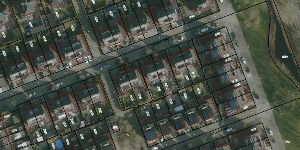 Het perceel waarop Veenweide 18 staat heeft een oppervlakte van 284 m². Dit is een middelgroot perceel. De perceeloppervlakte wordt geregistreerd door het Kadaster. Gedetailleerde informatie over de maten van dit perceel kunt u vinden in het rapport Kadastrale kaart met maatvoering van Veenweide 18.