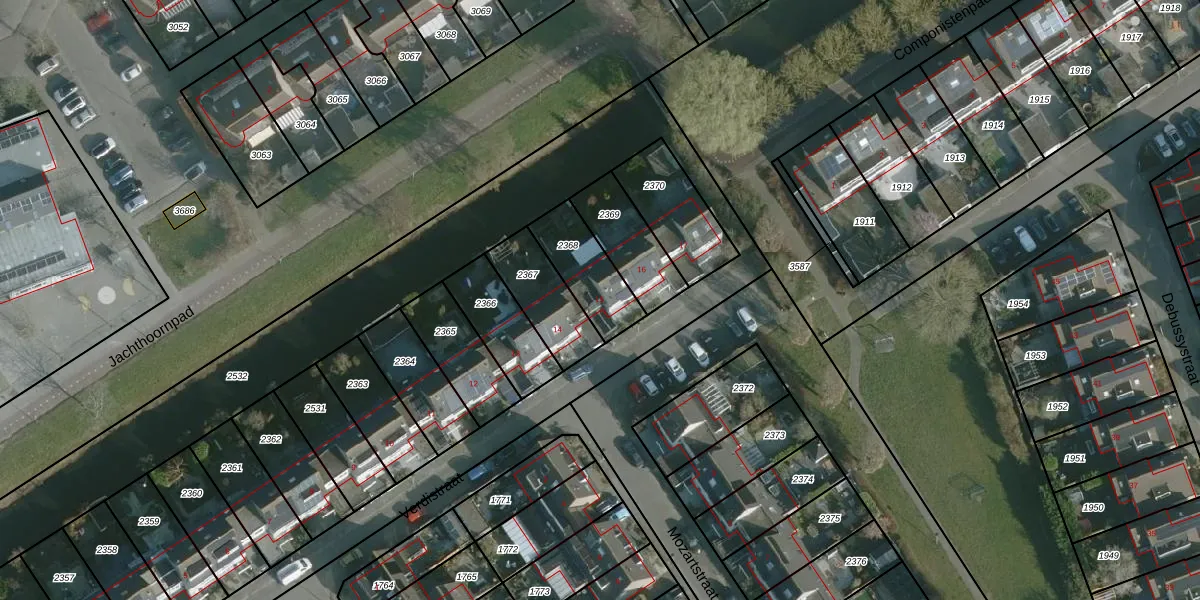 Het perceel waarop Verdistraat 15 staat heeft een oppervlakte van 197 m². Dit is een middelgroot perceel. De perceeloppervlakte wordt geregistreerd door het Kadaster. Gedetailleerde informatie over de maten van dit perceel kunt u vinden in het rapport Kadastrale kaart met maatvoering van Verdistraat 15.