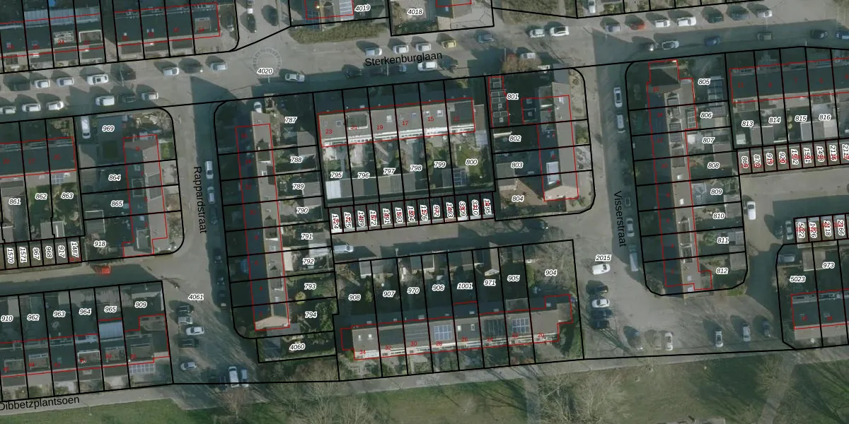 Het perceel waarop Visserstraat 1-h staat heeft een oppervlakte van 18 m². Dit is een klein perceel. De perceeloppervlakte wordt geregistreerd door het Kadaster. Gedetailleerde informatie over de maten van dit perceel kunt u vinden in het rapport Kadastrale kaart met maatvoering van Visserstraat 1-h.
