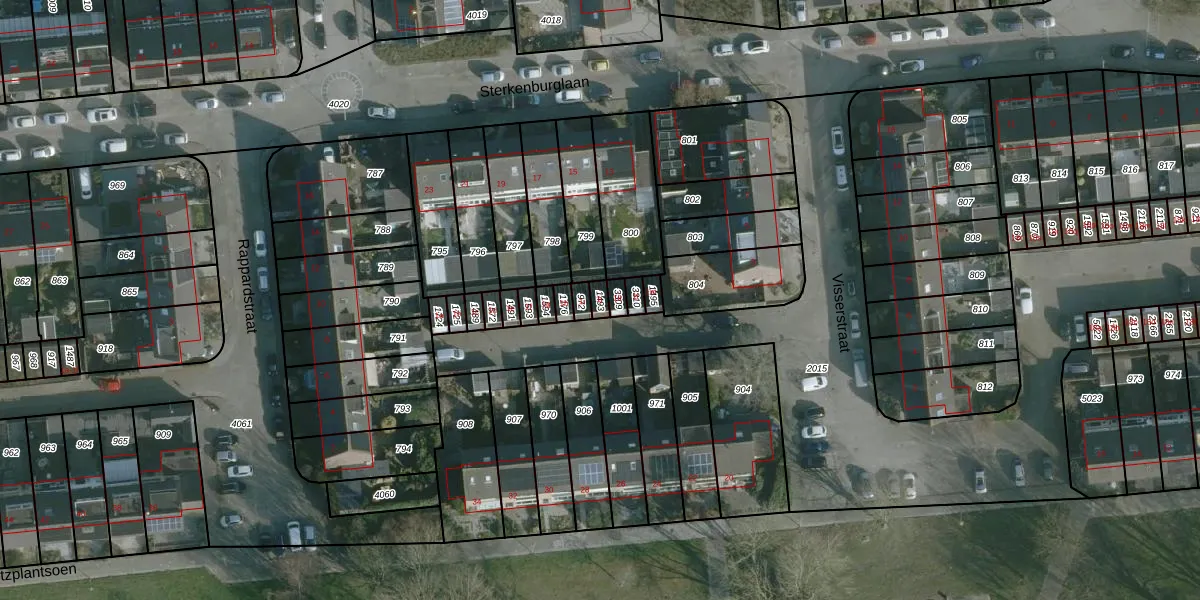 Het perceel waarop Visserstraat 1-j staat heeft een oppervlakte van 18 m². Dit is een klein perceel. De perceeloppervlakte wordt geregistreerd door het Kadaster. Gedetailleerde informatie over de maten van dit perceel kunt u vinden in het rapport Kadastrale kaart met maatvoering van Visserstraat 1-j.