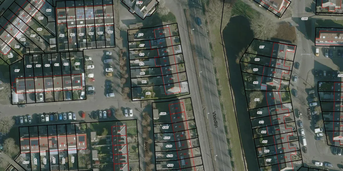 Gebruik de zoekbalk of klik op een perceel voor informatie over de adressen binnen dit perceel.