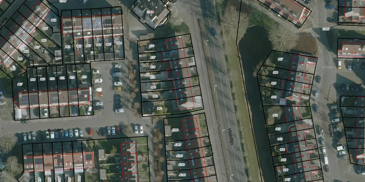 Gebruik de zoekbalk of klik op een perceel voor informatie over de adressen binnen dit perceel.