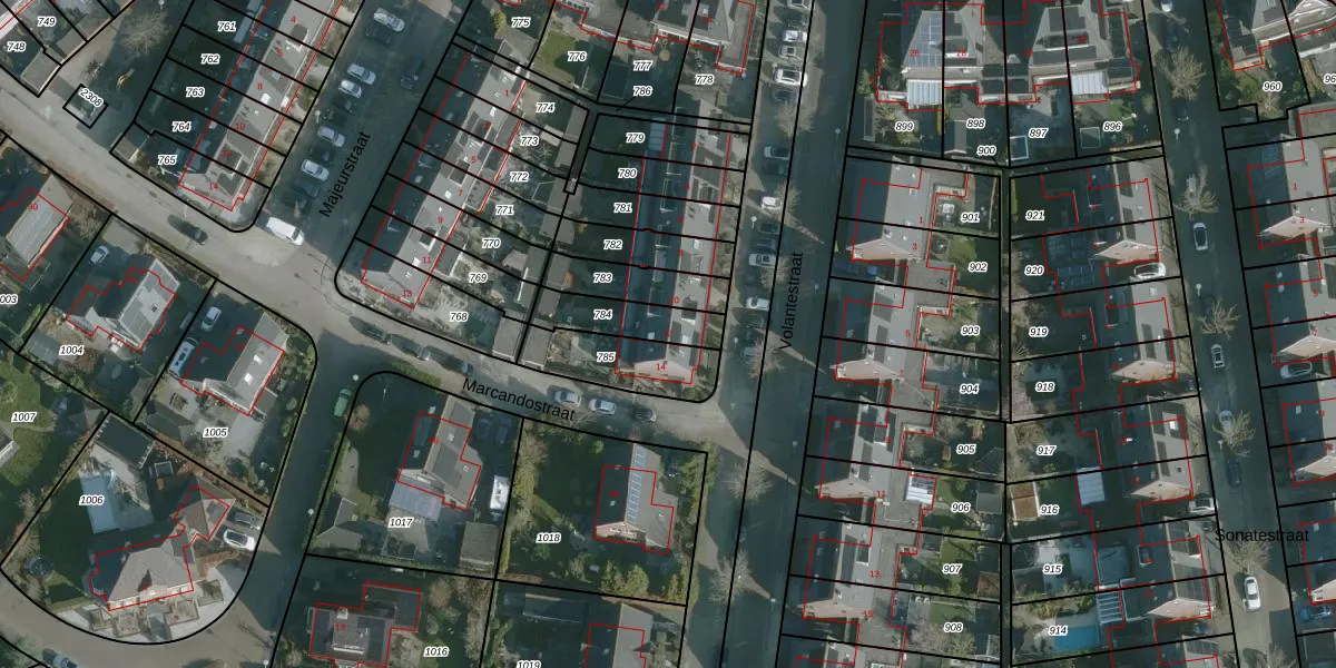 Het perceel waarop Volantestraat 12 staat heeft een oppervlakte van 157 m². Dit is een middelgroot perceel. De perceeloppervlakte wordt geregistreerd door het Kadaster. Gedetailleerde informatie over de maten van dit perceel kunt u vinden in het rapport Kadastrale kaart met maatvoering van Volantestraat 12.