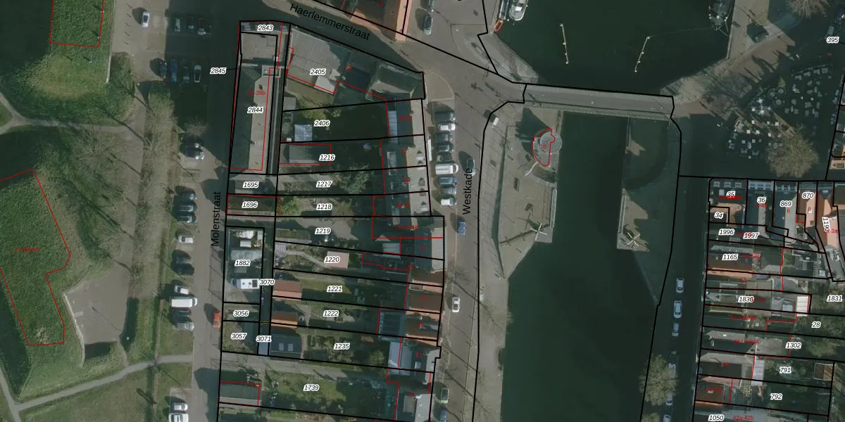 Westkade 43 is gelegen op kadastraal perceel HLV01A1218. Deze kadastrale aanduiding is uniek en wordt gebruikt door het Kadaster om eigendomsrechten en andere zakelijke rechten vast te leggen. Het perceel maakt onderdeel uit van de kadastrale gemeente Hellevoetsluis.