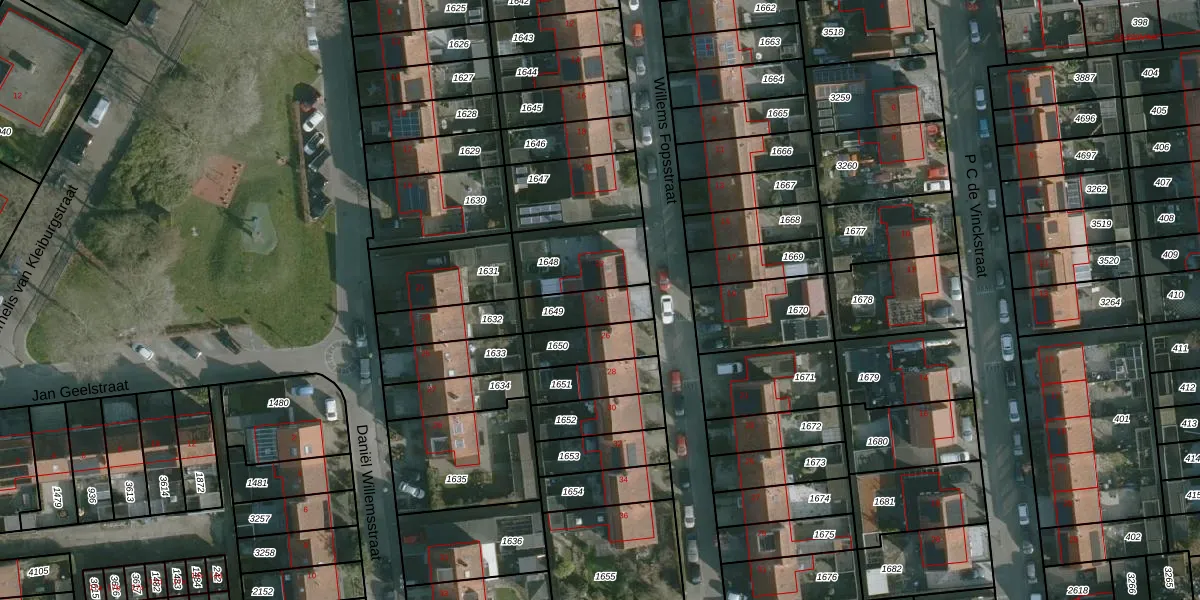 Willems Fopsstraat 24 is gelegen op kadastraal perceel HLV01C1649. Deze kadastrale aanduiding is uniek en wordt gebruikt door het Kadaster om eigendomsrechten en andere zakelijke rechten vast te leggen. Het perceel maakt onderdeel uit van de kadastrale gemeente Hellevoetsluis.
