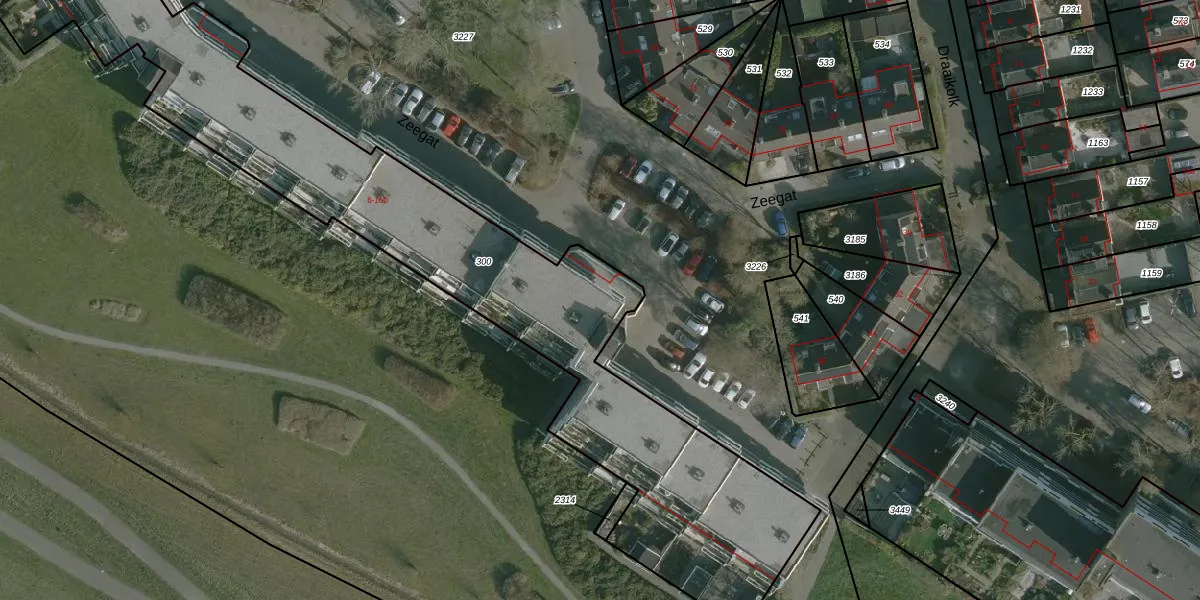 Het perceel waarop Zeegat 104 staat heeft een oppervlakte van 3270 m². Dit is een zeer groot perceel. De perceeloppervlakte wordt geregistreerd door het Kadaster. Gedetailleerde informatie over de maten van dit perceel kunt u vinden in het rapport Kadastrale kaart met maatvoering van Zeegat 104.