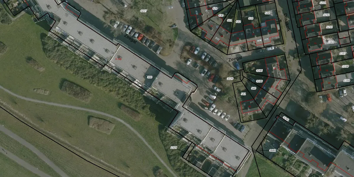 Het perceel waarop Zeegat 108 staat heeft een oppervlakte van 3270 m². Dit is een zeer groot perceel. De perceeloppervlakte wordt geregistreerd door het Kadaster. Gedetailleerde informatie over de maten van dit perceel kunt u vinden in het rapport Kadastrale kaart met maatvoering van Zeegat 108.