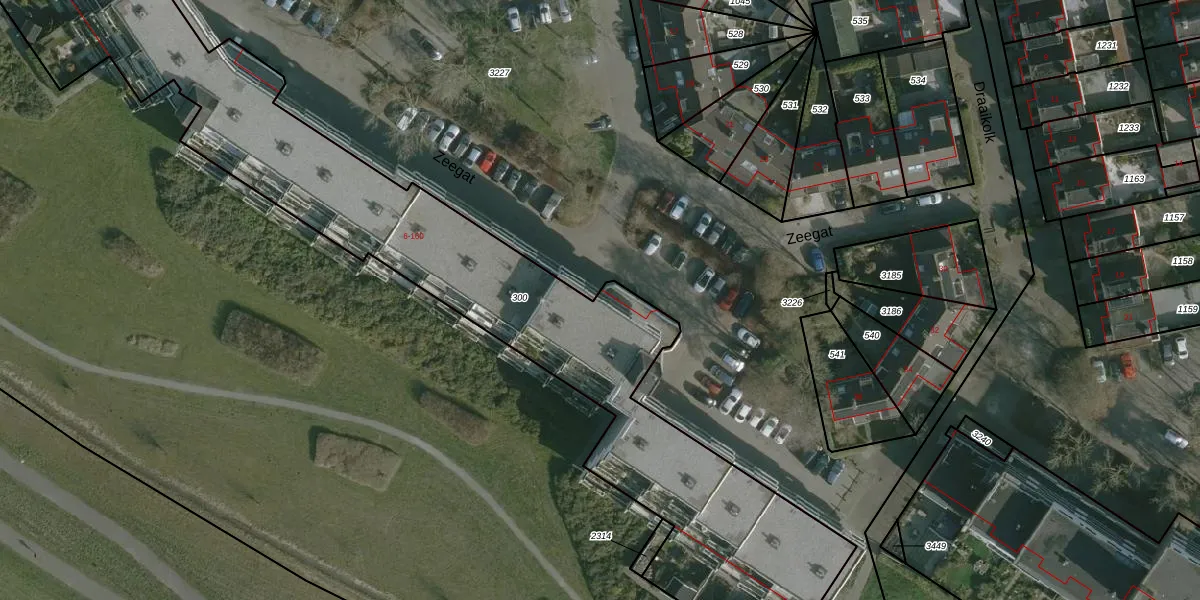 Het perceel waarop Zeegat 114 staat heeft een oppervlakte van 3270 m². Dit is een zeer groot perceel. De perceeloppervlakte wordt geregistreerd door het Kadaster. Gedetailleerde informatie over de maten van dit perceel kunt u vinden in het rapport Kadastrale kaart met maatvoering van Zeegat 114.