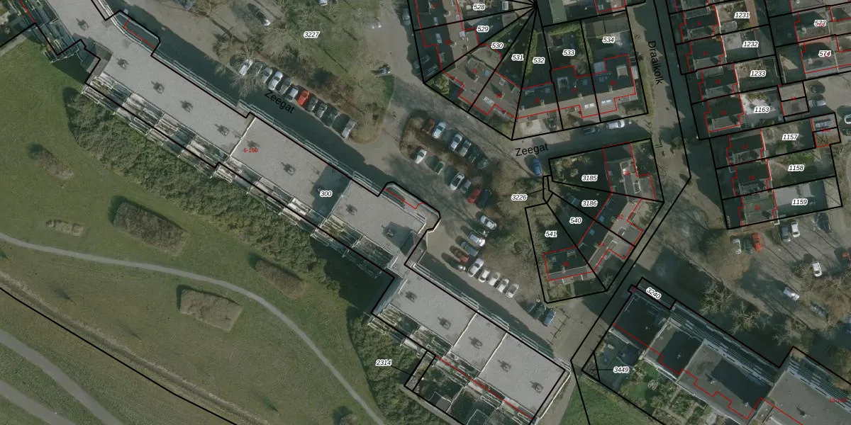 Het perceel waarop Zeegat 116 staat heeft een oppervlakte van 3270 m². Dit is een zeer groot perceel. De perceeloppervlakte wordt geregistreerd door het Kadaster. Gedetailleerde informatie over de maten van dit perceel kunt u vinden in het rapport Kadastrale kaart met maatvoering van Zeegat 116.