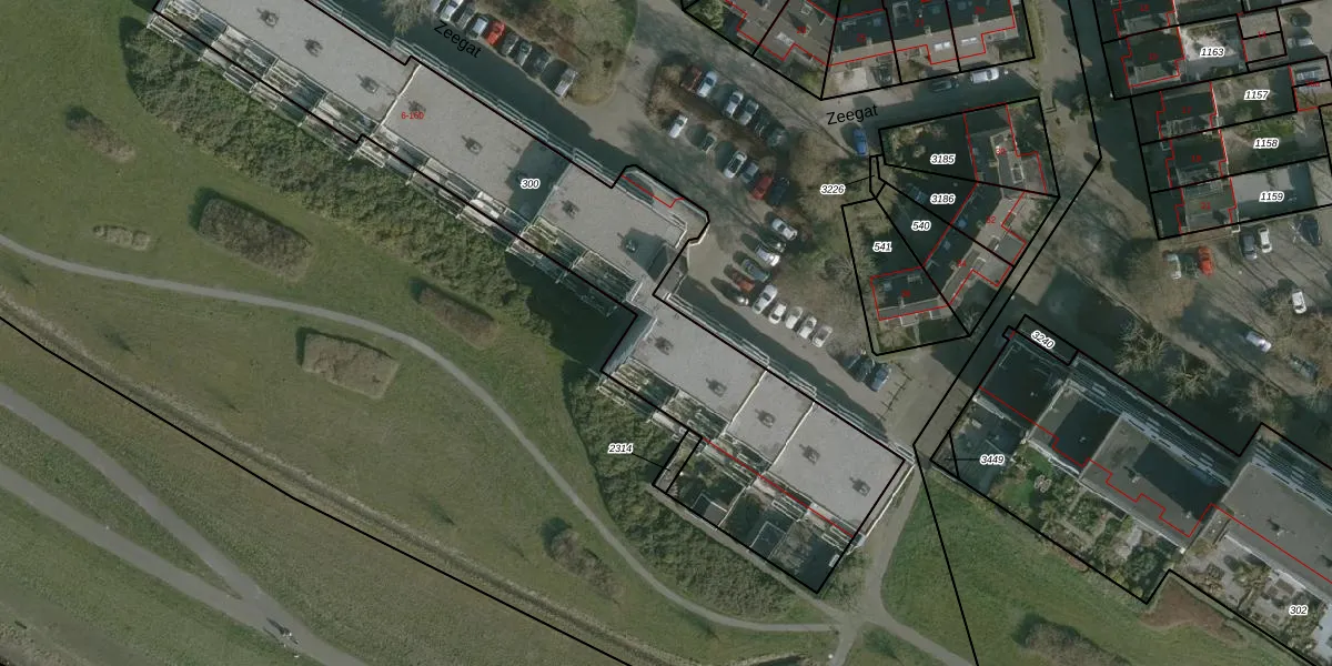 Het perceel waarop Zeegat 126 staat heeft een oppervlakte van 3270 m². Dit is een zeer groot perceel. De perceeloppervlakte wordt geregistreerd door het Kadaster. Gedetailleerde informatie over de maten van dit perceel kunt u vinden in het rapport Kadastrale kaart met maatvoering van Zeegat 126.