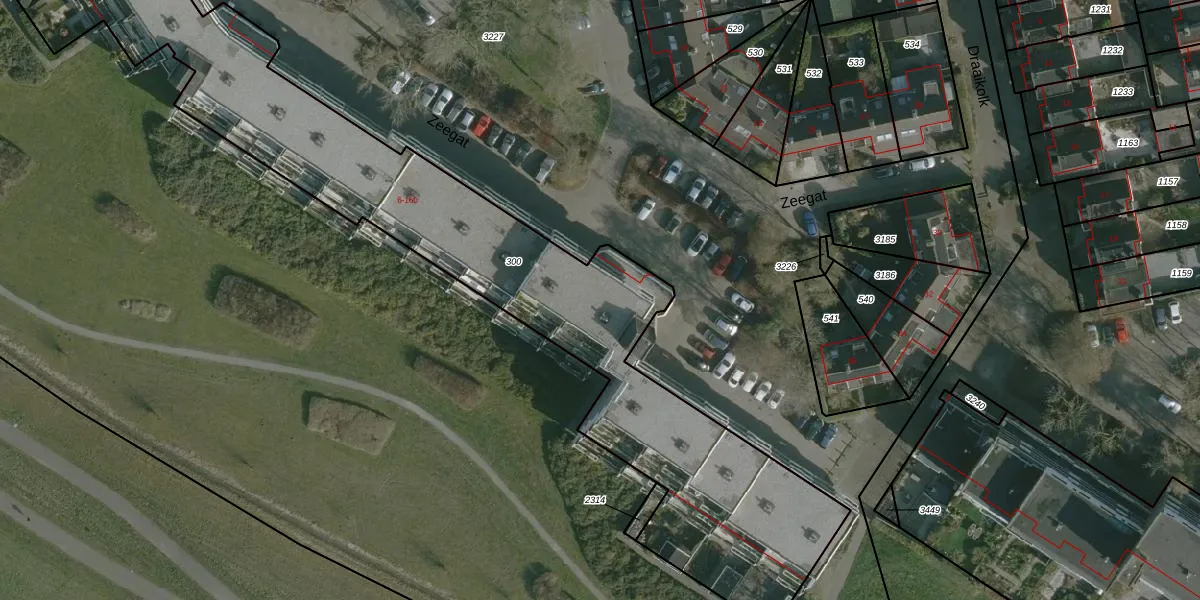 Het perceel waarop Zeegat 76 staat heeft een oppervlakte van 3270 m². Dit is een zeer groot perceel. De perceeloppervlakte wordt geregistreerd door het Kadaster. Gedetailleerde informatie over de maten van dit perceel kunt u vinden in het rapport Kadastrale kaart met maatvoering van Zeegat 76.