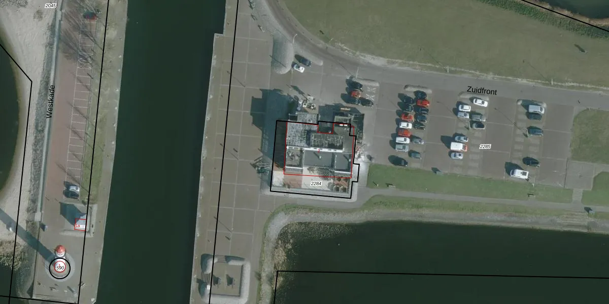 Zuidfront 4 is gelegen op kadastraal perceel HLV01A2284. Deze kadastrale aanduiding is uniek en wordt gebruikt door het Kadaster om eigendomsrechten en andere zakelijke rechten vast te leggen. Het perceel maakt onderdeel uit van de kadastrale gemeente Hellevoetsluis.