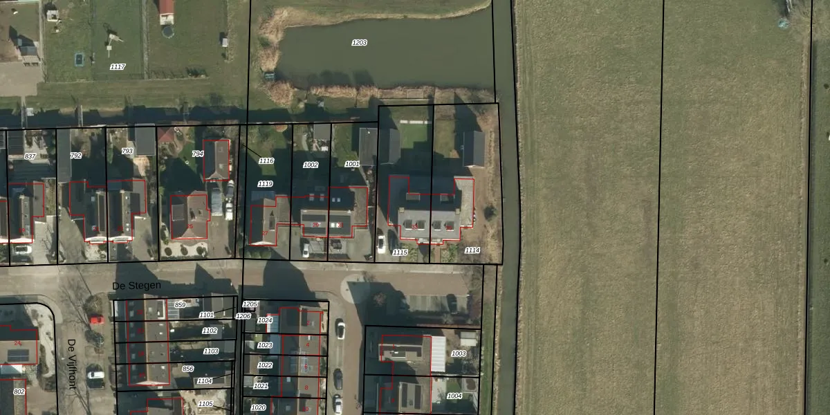 Het perceel waarop De Stegen 33 staat heeft een oppervlakte van 505 m². Dit is een groot perceel. De perceeloppervlakte wordt geregistreerd door het Kadaster. Gedetailleerde informatie over de maten van dit perceel kunt u vinden in het rapport Kadastrale kaart met maatvoering van De Stegen 33.