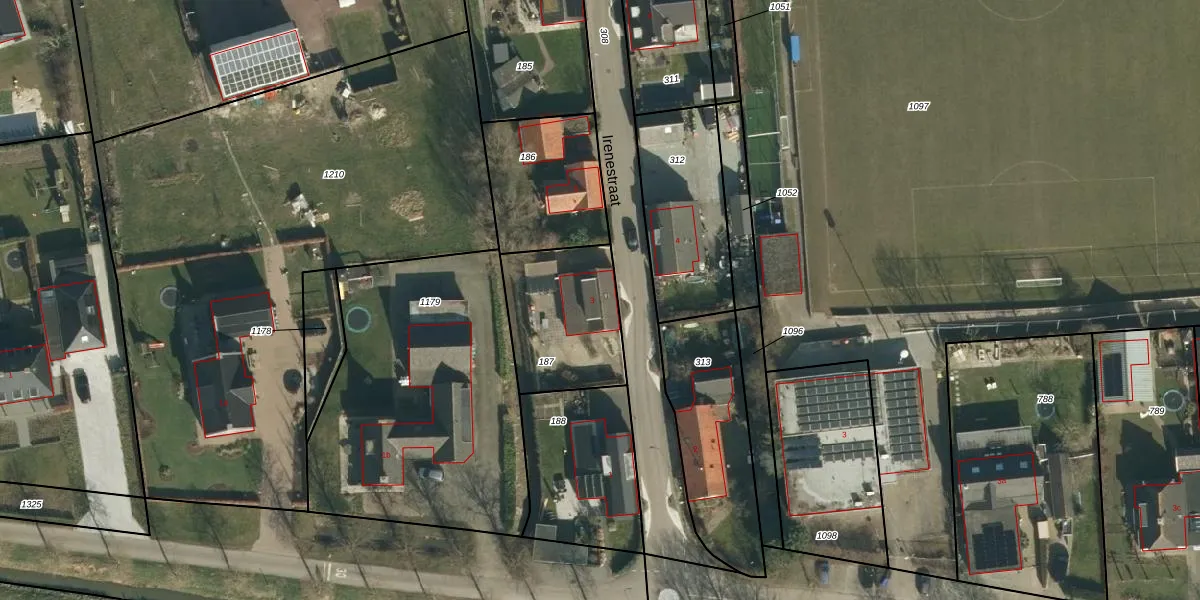 Irenestraat 3 is gelegen op kadastraal perceel HTN05H187. Deze kadastrale aanduiding is uniek en wordt gebruikt door het Kadaster om eigendomsrechten en andere zakelijke rechten vast te leggen. Het perceel maakt onderdeel uit van de kadastrale gemeente Haaften.