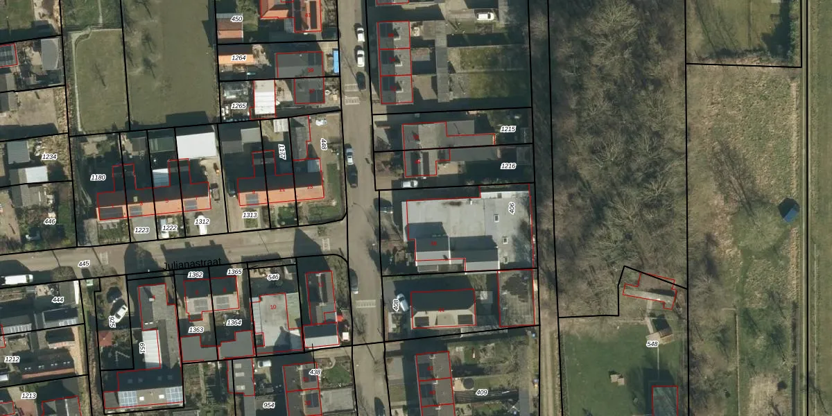 Het adres ligt op het perceel HTN05-H-406, dat zich in de kadastrale gemeente Haaften bevindt. Het perceel is kleiner dan gemiddeld in Haaften. Het perceel is 770 m² groot, terwijl het gemiddelde ligt op 6558,35 m². Het grootste perceel in de kadastrale gemeente is 63,1 ha. Het kleinste perceel heeft een oppervlakte van 0 m². Op het perceel zijn 6 adressen aanwezig. De huidige grenzen van het perceel zijn digitaal in de Basisregistratie Kadaster (BRK) geregistreerd op 19-11-2019.
