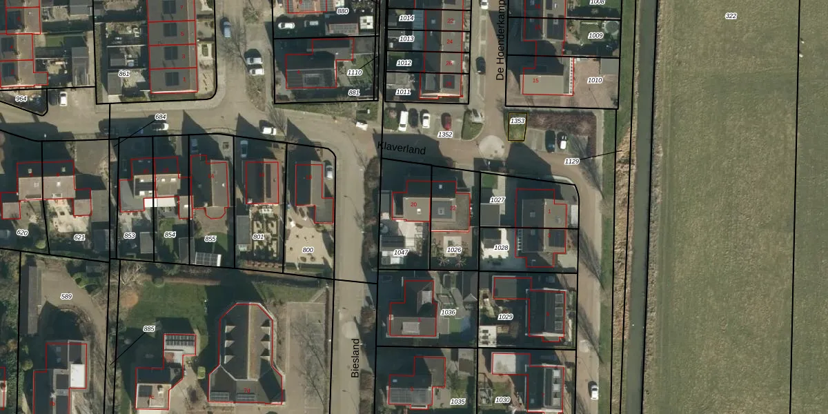 Klaverland 20 is gelegen op kadastraal perceel HTN05H1047. Deze kadastrale aanduiding is uniek en wordt gebruikt door het Kadaster om eigendomsrechten en andere zakelijke rechten vast te leggen. Het perceel maakt onderdeel uit van de kadastrale gemeente Haaften.