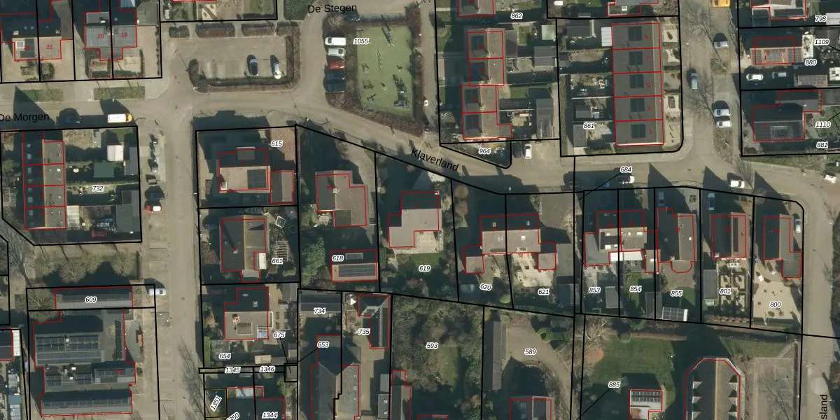 Het perceel waarop Klaverland 4 staat heeft een oppervlakte van 580 m². Dit is een groot perceel. De perceeloppervlakte wordt geregistreerd door het Kadaster. Gedetailleerde informatie over de maten van dit perceel kunt u vinden in het rapport Kadastrale kaart met maatvoering van Klaverland 4.